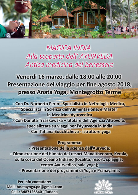 2018 Agosto - Magica India - Alla scoperta dell’Ayurveda, antica medicina del benessere. La pratica di Pranayama e Yoga quotidianamente
