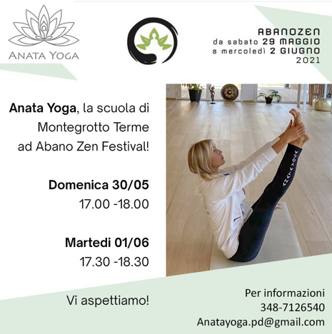 2021 Maggio / Giugno - La scuola Anata Yoga partecipa ad Abano Zen Festival con due l’incontri guidati da Tatiana Souchtcheva, fondatrice della scuola ed istruttrice di yoga nazionale.
