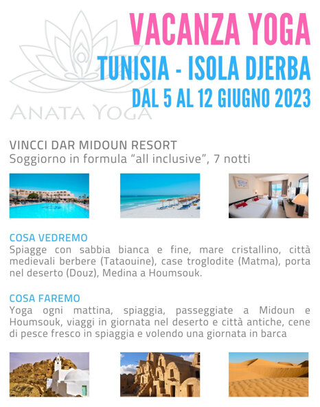 2023 giugno - Stage vacanza a Djerba (Tunisia) con Tatiana Souchtcheva, istruttore nazionale Csen e Jyotim, Anata Yoga